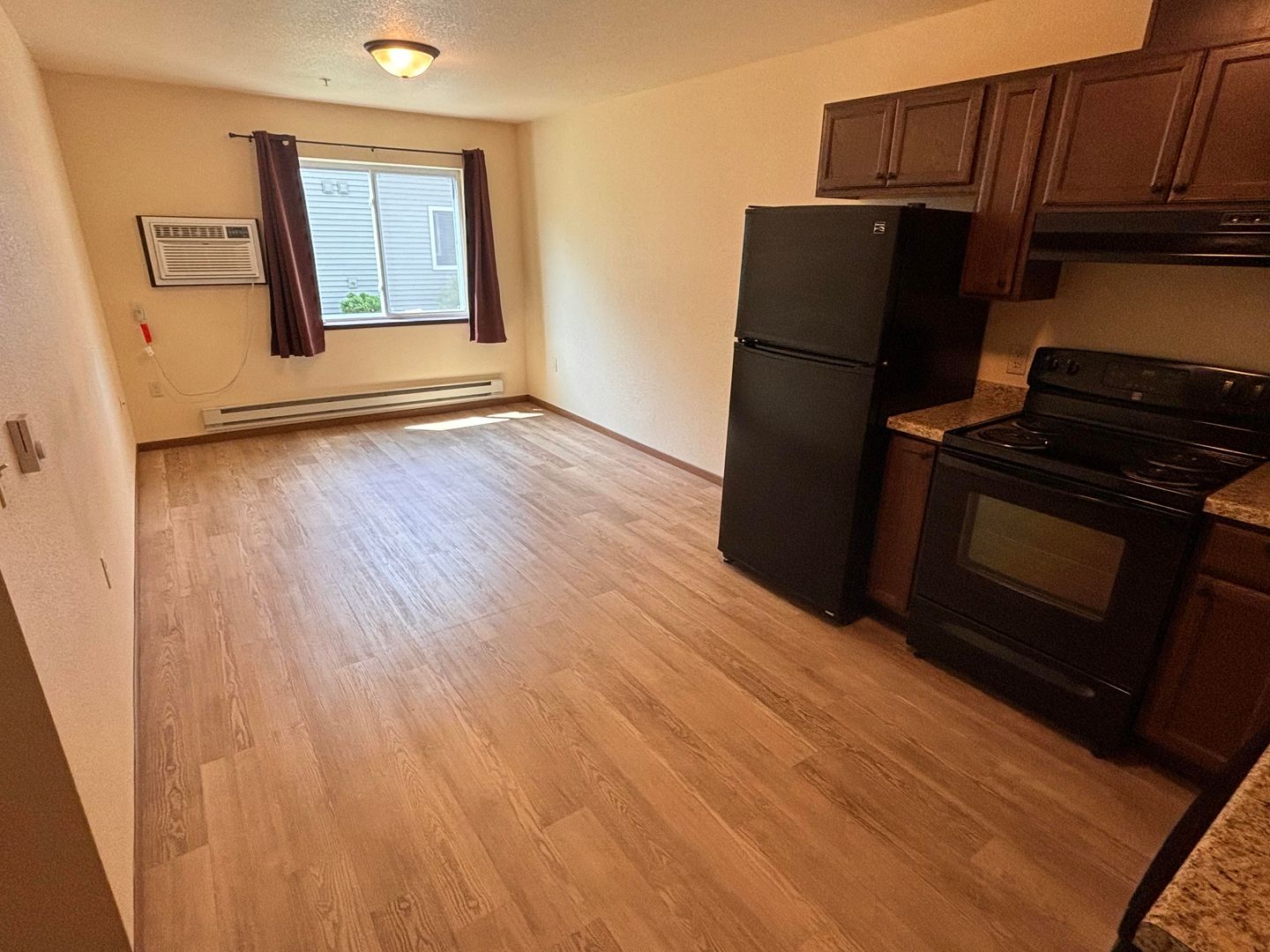 Our 2 bedroom apartments are a very short walk to campus and have all the amenities you need! Each apartment has an open floorplan with two spacious bedrooms, a washer and dryer, and a full bathroom. This is a beautiful newer building with immaculate plank flooring!