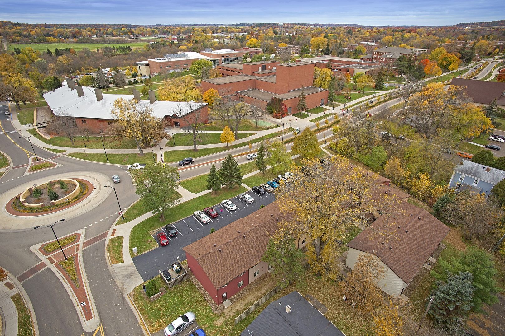 This “Townhouse Style” Building is directly across the street from the center of the UWRF campus! You could roll out of bed and be at class within minutes! Each two-story apartment has five spacious bedrooms, two bathrooms, a large laundry room and assigned off-street parking stalls in our lot.